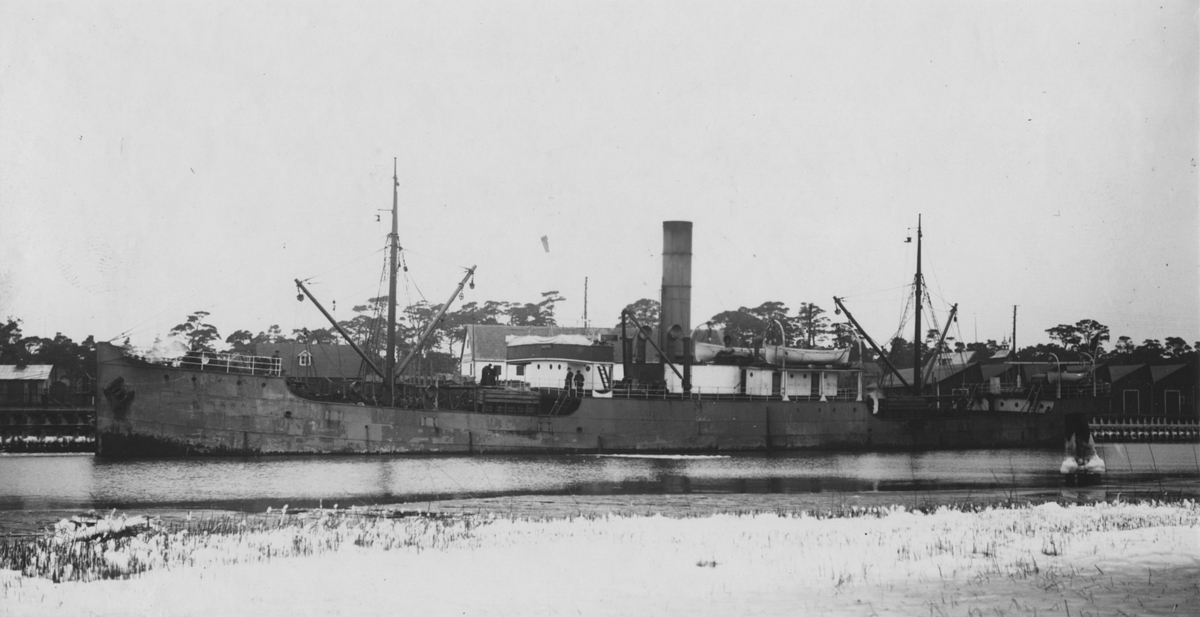 Lastångfartyget MINERAL av Norrköping i Åhus, mars 1919.