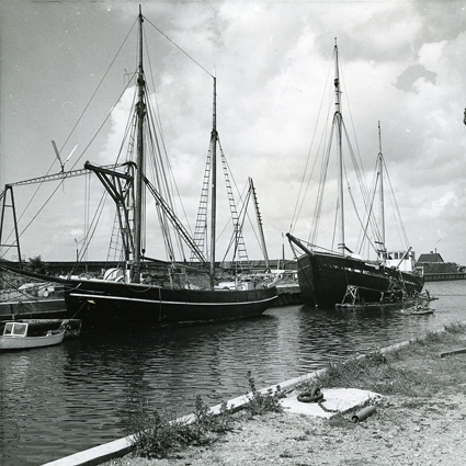 Holms skeppsvarv. Två skutor vid utrustningskajen.