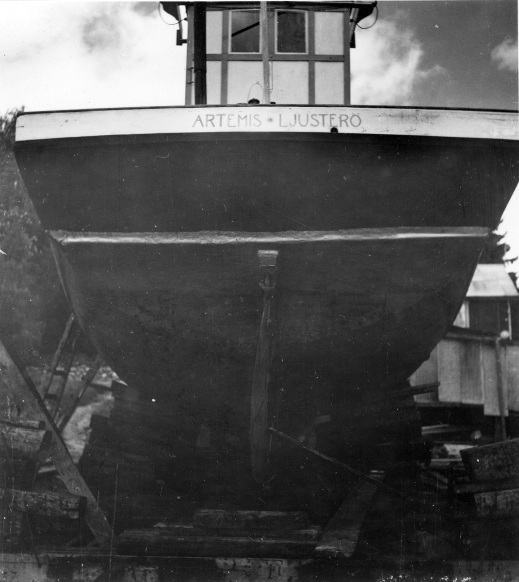 Uppland, Stockholms län, Åkers skreppslag, Ljusterö socken, Bergshamra varv. sandkilen Artemis av Ljusterö på bergshamra verkstad.