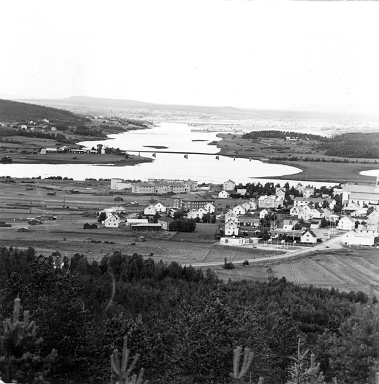 Neg nr 2. Utsikt mot Över Kalix kyrkby från Brännaberget. Foto 18.8 (1962).