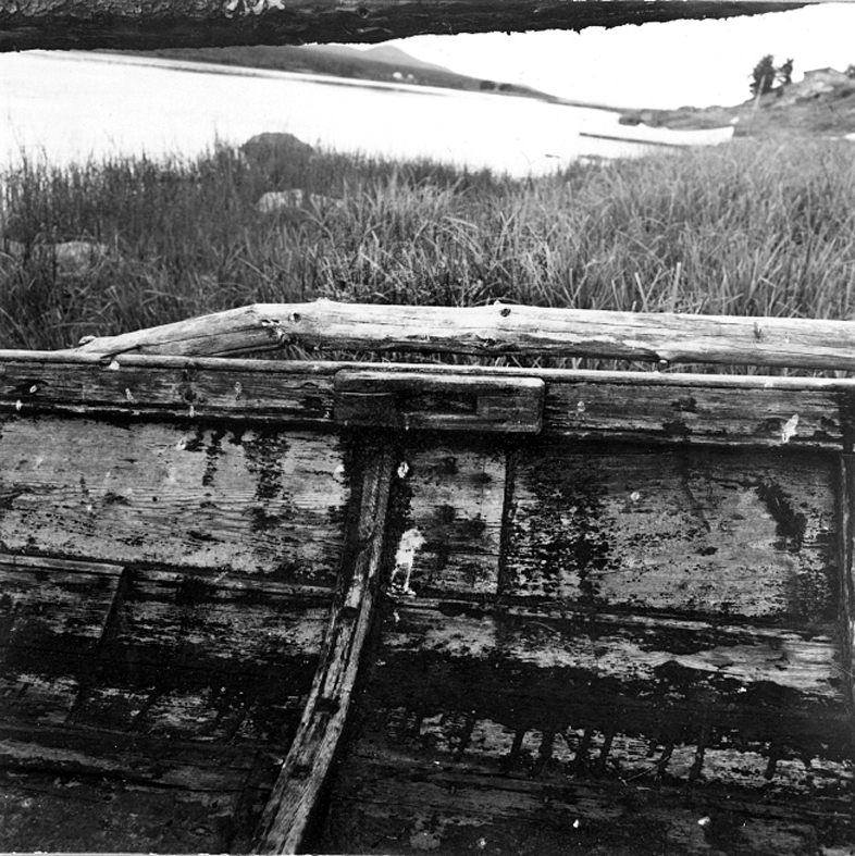 Neg nr 7. Gammal båt i Svartbyn, byggd av Johan Larssons far. Detaljbild som visar fästet för en mastbräda. Foto 18.8 (1962).