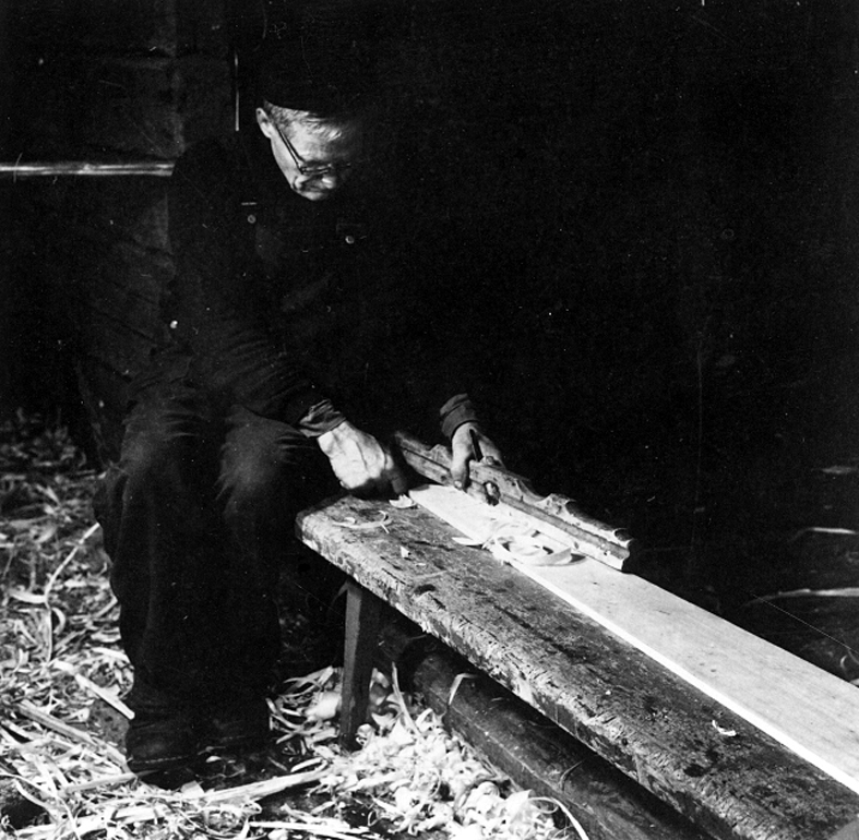 Neg nr 144. Upphyvling av urfalsningen av bordkanten mot stäven. Foto 10.8 (1962).