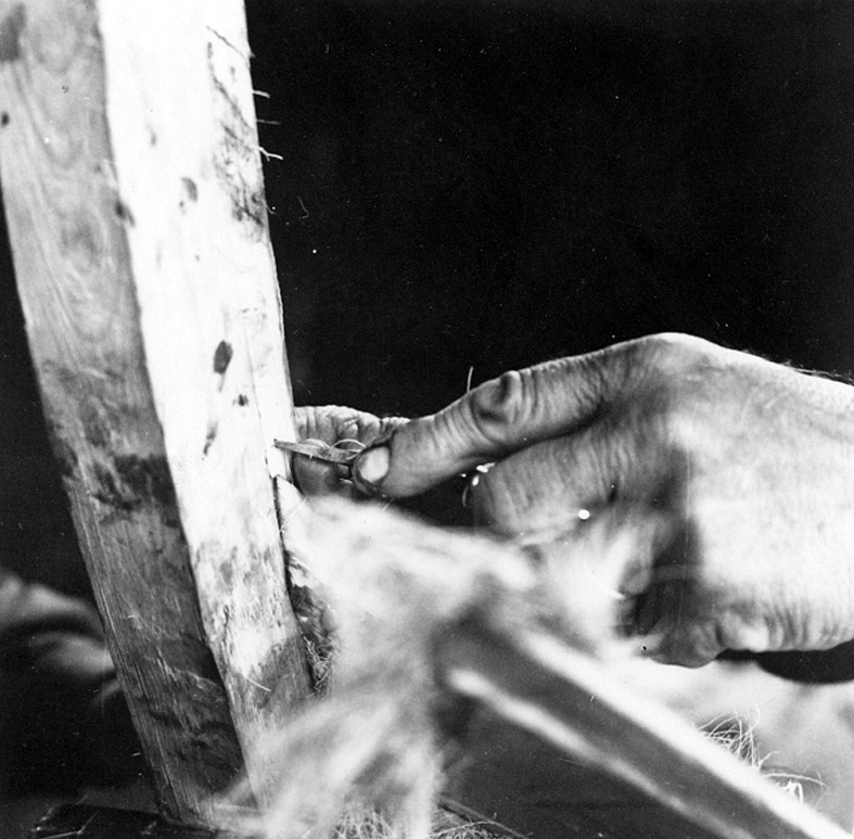 Neg nr 165. Hål för 3" spiken borras i förstävens spunning. Foto 11.8 1962.