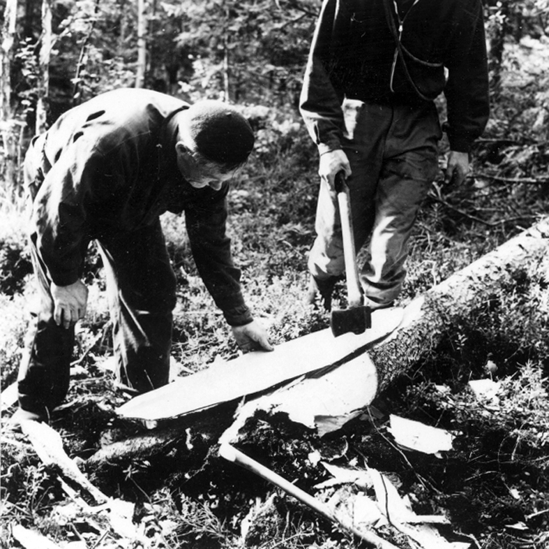 Neg nr 202. Pappmallen för bakhusspantet läggs på ämnet för provning. Foto 14.8 1962.