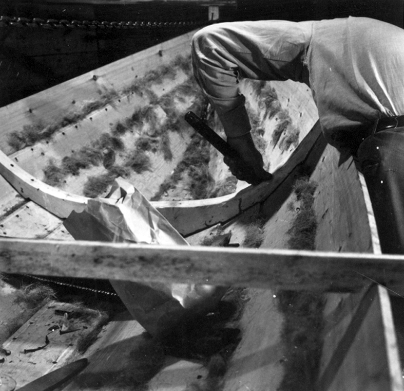 Neg nr 224, Bakhusspantet, nitning av spik. Foto 14.8 1962.