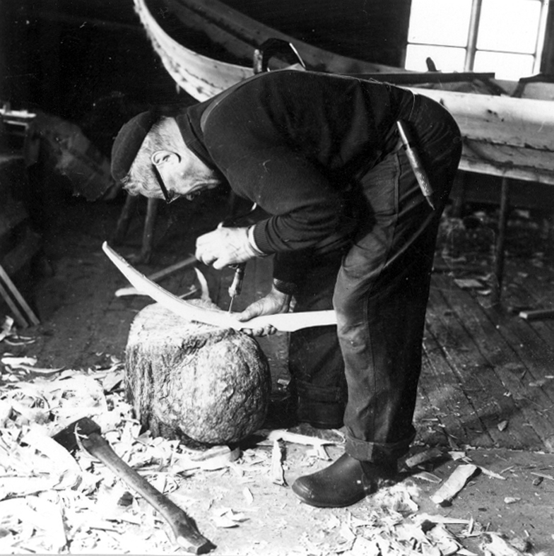Neg nr 240, Spikhål borras genom spantskarven. Foto 15.8 1962.