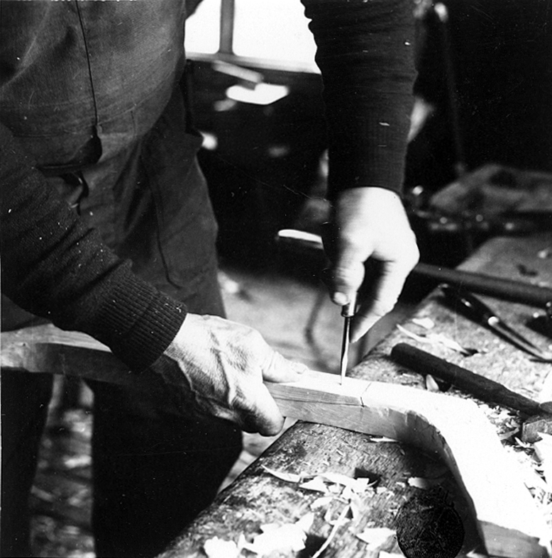Neg nr 290, Hål för spikning genom skarven borras upp. Foto 21.8 (1962).