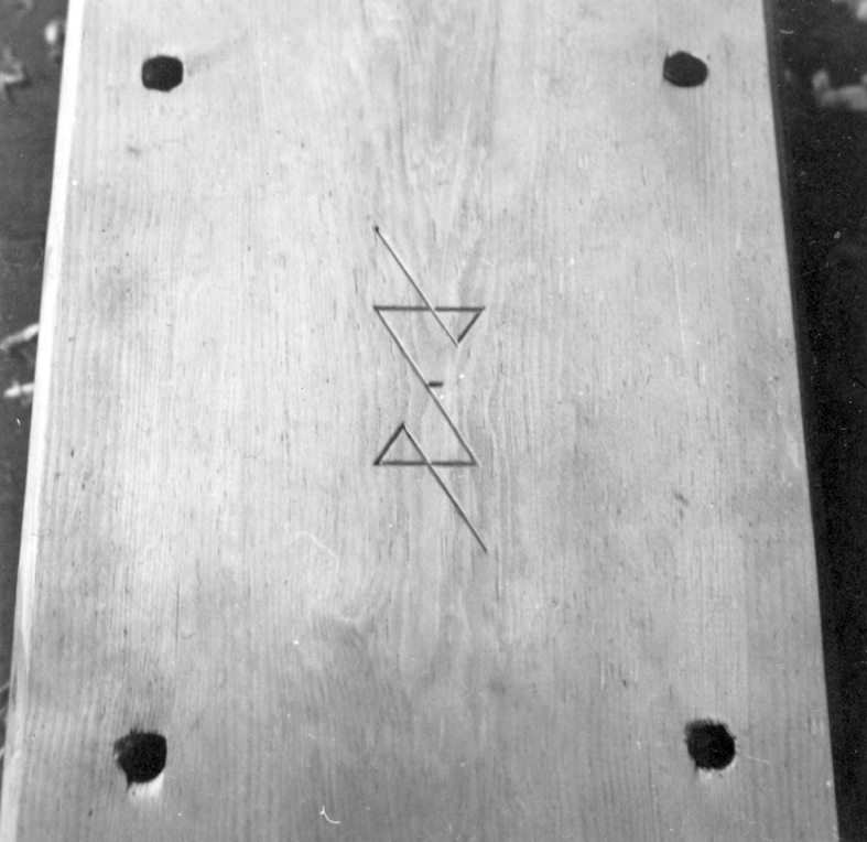 Neg nr 302, Roddpallen med båtbyggarens bomärke. Foto 24.8 1962.