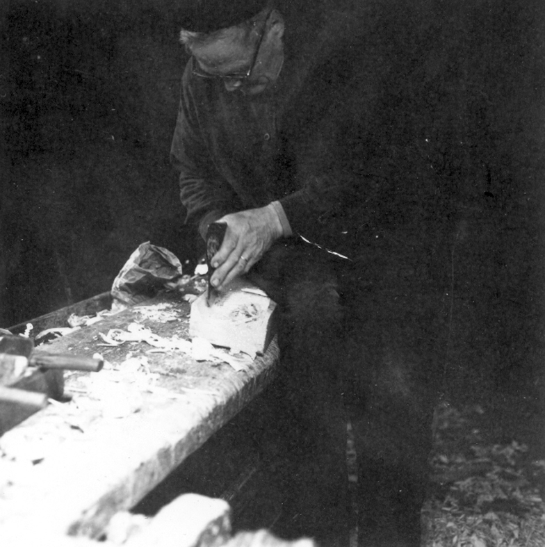 Neg nr 306, Öskaret gröpes ur med yxa. Foto 24.8 1962.