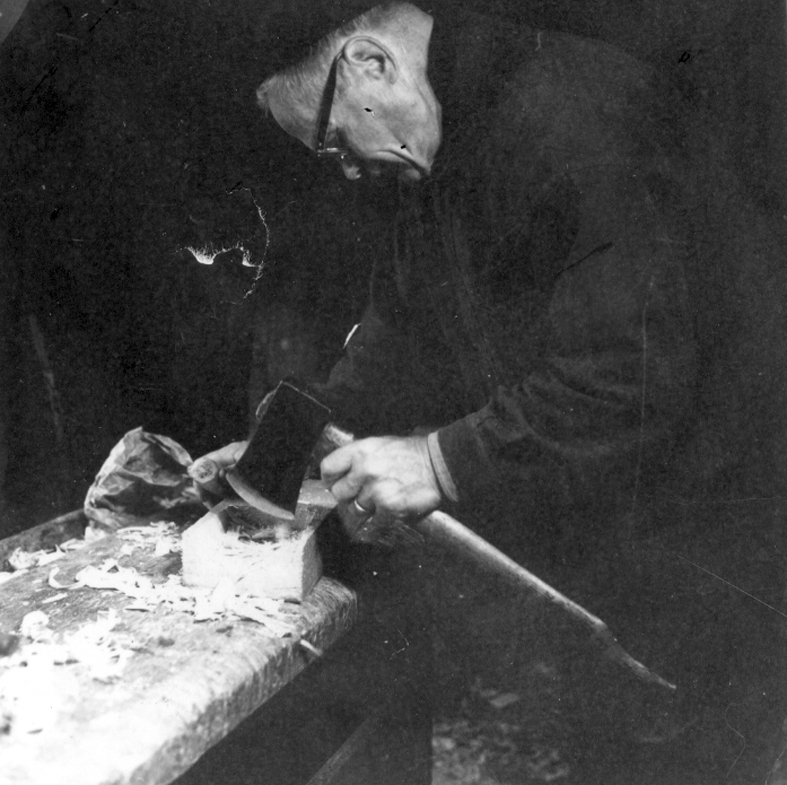 Neg nr 307, Öskaret gröpes ur med yxa. Foto 24.8 1962.