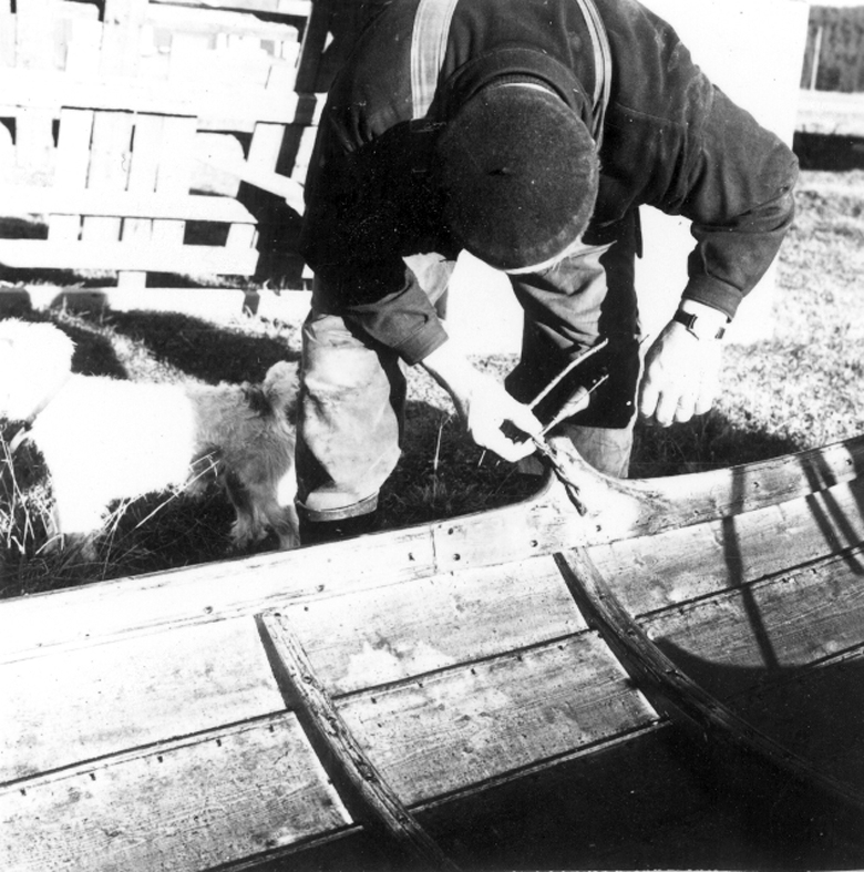 Neg nr 319, Johan Larsson sätter i håvidjor. Foto 7.10 1962.