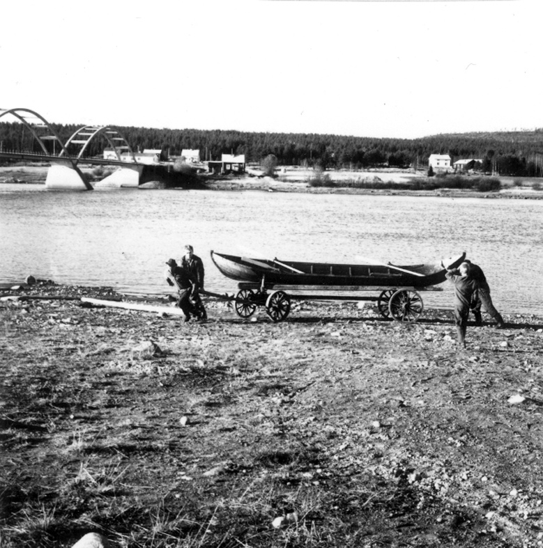 Neg nr 322, Framme vid stranden av Kalix älv nära bron vid Svartbyn. Foto 7.10 1962.