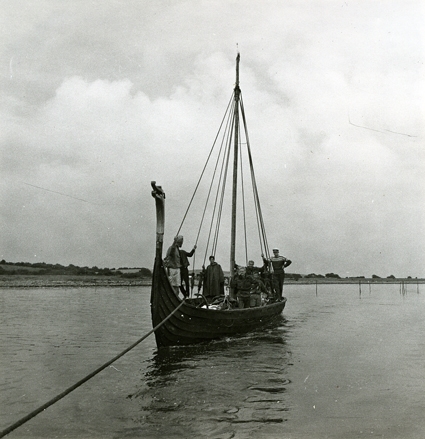 Imme Gram under bogsering in till Barsö. Imme Gram under segling i Lilla Bält.