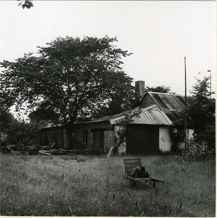 Exteriör från sydost. I förgrunden en rullebör att köra fiskredskap på. Christian Madsens båtbyggeri. Foto N(ils) Nilsson aug (19)64. Danmark, Själland, Lynaes.