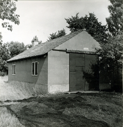 Bottengarnsbodens sydgavel. Christian Madsens båtbyggeri. Foto N(ils) Nilsson aug (19)64. Danmark, Själland, Lynaes.