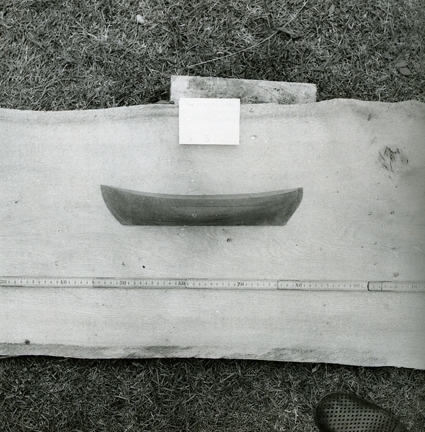 Halvmodell nr 5 (se uppteckning). Christian Nielsen gör en paus under uppmärkningsarbetet med husen. Christian Madsens båtbyggeri. Foto N(ils) Nilsson aug (19)64. Danmark, Själland, Lynaes.