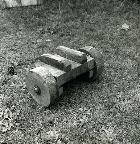 Vagn av trä att sätta under kölen då man drar båtar över land. Christian Madsens båtbyggeri. Foto N(ils) Nilsson aug (19)64. Danmark, Själland, Lynaes.