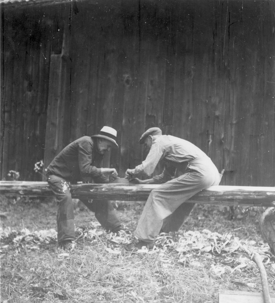 Uppland, Stockholms län, Frötuna skeppslag, Länna socken, Mora by. Hyvling av flaggstång, juni 1950