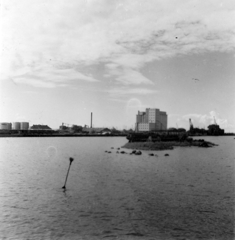 Småland, Kalmar. Parti av hamnen, th spannmålssilo