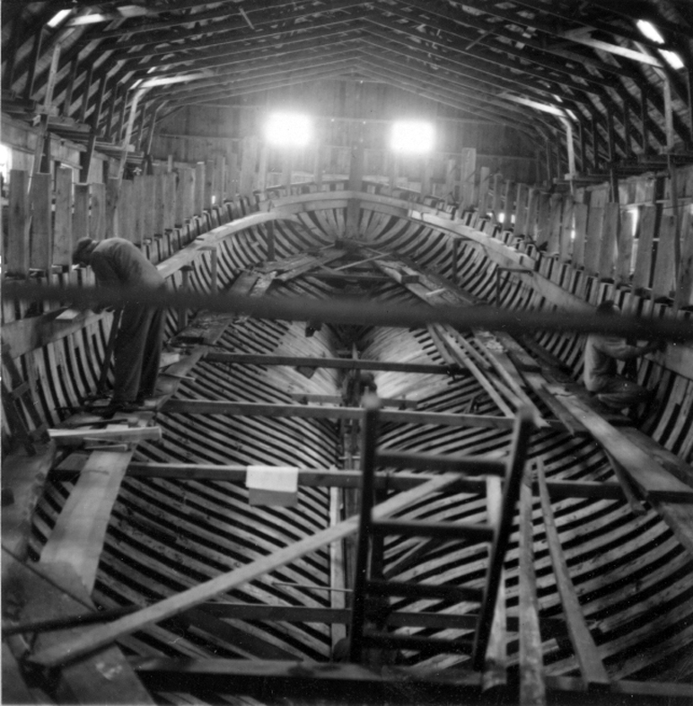 Titel: Småland, Kalmar län, Södra Möre härad, Våxtorps socken, Ekenäs. Lunds varv. Trålare för Ryssland under byggnad.