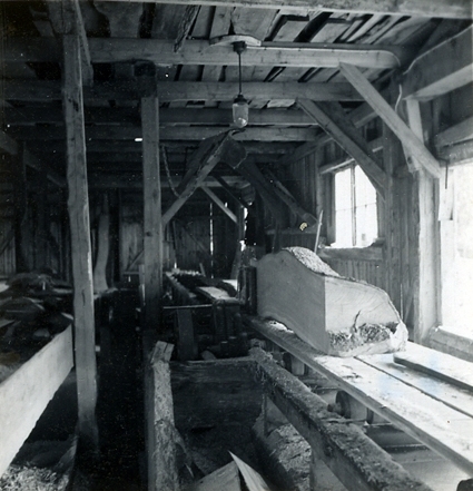 Fredrik Jonssons varv. Fredrik Jonssons varv. Ektimmer sågas på blocksåg.