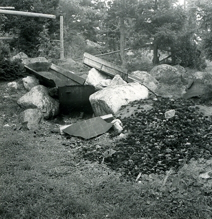 "Bark", bestående av gryta för kokning av barklag till imprengering av skötar samt lave på vilken skötarna lägges upp då lagen skall rinna av.