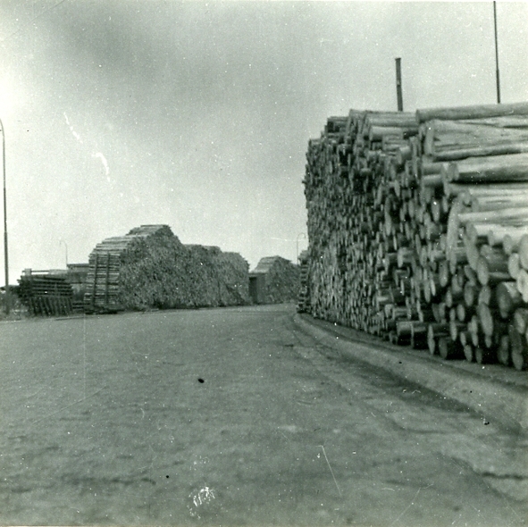 Upplag av pitprops på kajen (oskarshamn)