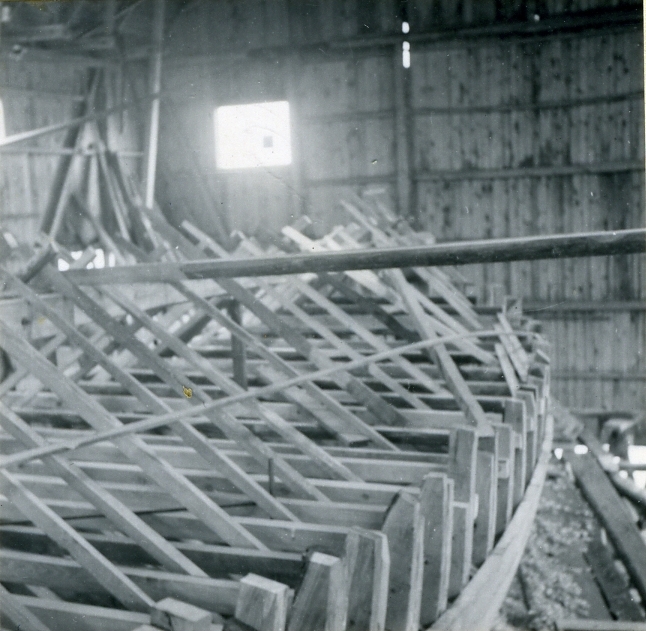 Lunds skeppsvarv.Lotsbåt för Gotland under byggnad. Bildena visar bl.a systemet för spantens uppstagning under byggnadsarbetet.