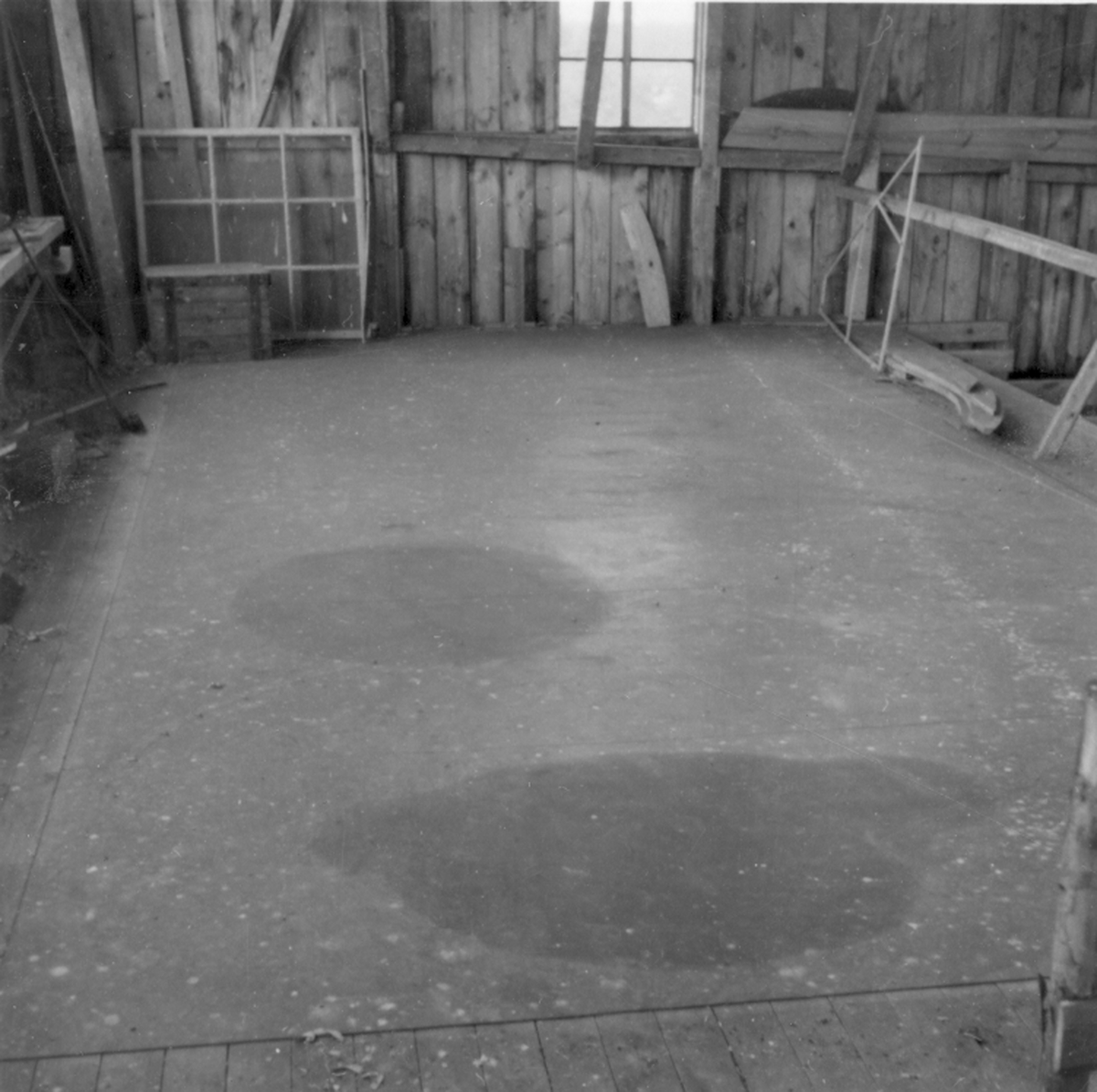 Titel: Albert Svenssons varv. Mallgolvet med utslagsri utlagt efter utslagsritning till ett spant.