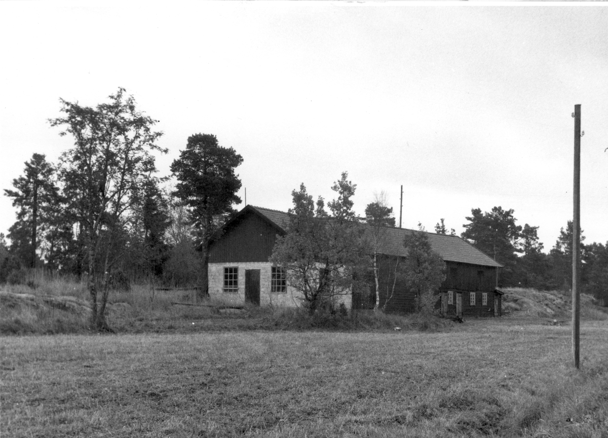 Båtbyggare Magnus Erikssons gård 1/16 mtl Gubbamoss. Ladugården. Okt 1954