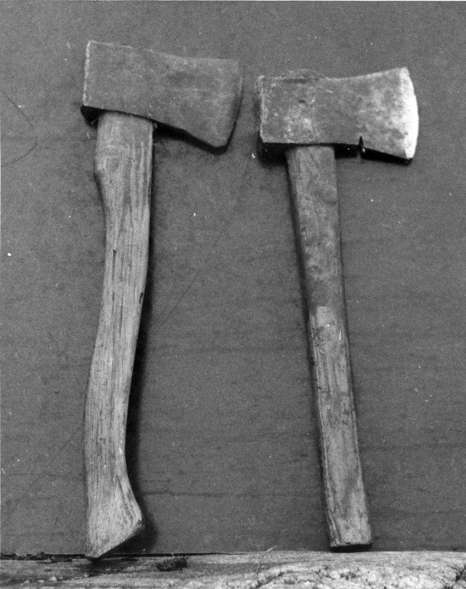Båtbyggare Magnus Erikssons yxor, okt 1954.
