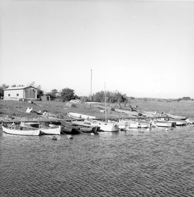 Skåne, Kristiansstads län, V Karups socken, Ramsjöstrand. Hamnen. Bryggan för småbåtar längst in i hamnen vid strandkanten. Tv hamnplanen.