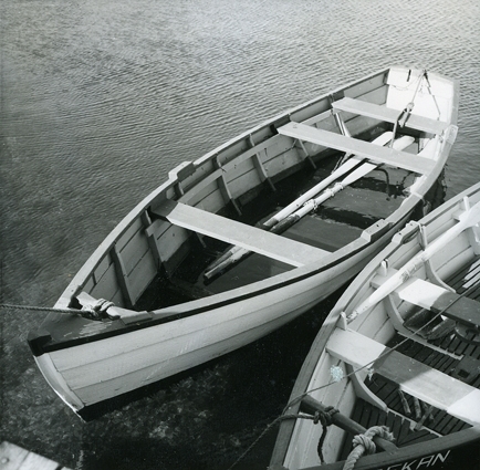 Plattbottnade roddbåtar vid småbåtsbryggan. Foto N Nilsson juni 1962.