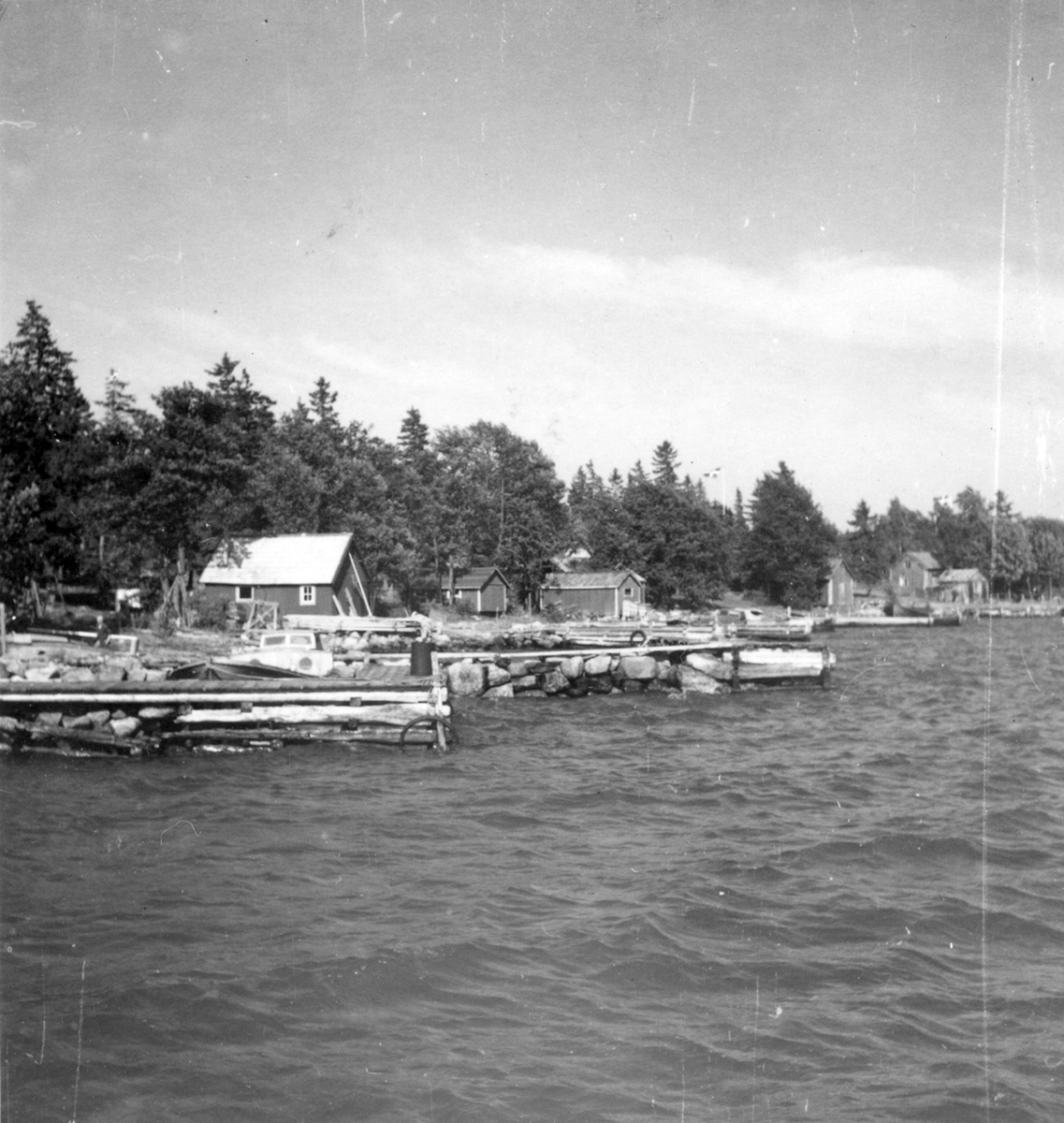Uppland, Stockholms län, Frötuna skeppslag, Blidö socken, Söderöra. Bryggor och sjöbodar.
