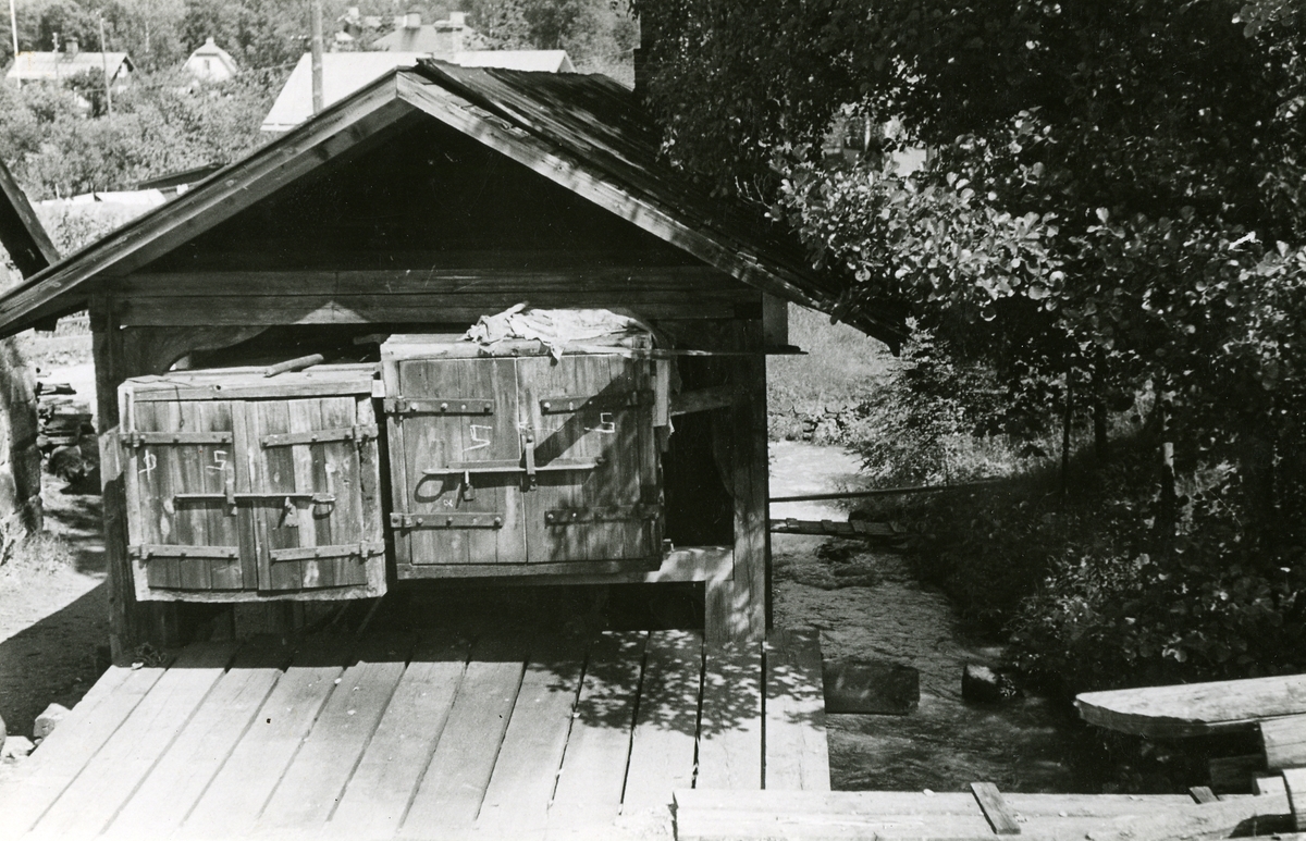 De gamla baskistorna. T.h. det vattenfyllda utloppet från torrdockan, vilken föt tillfället tömmes.