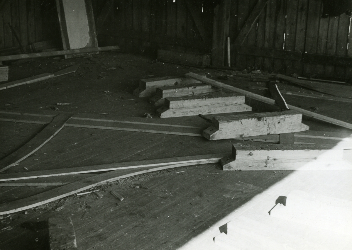 Interiör av "spantplanen". På golvet "ströna" ("ett strö= en kloss).