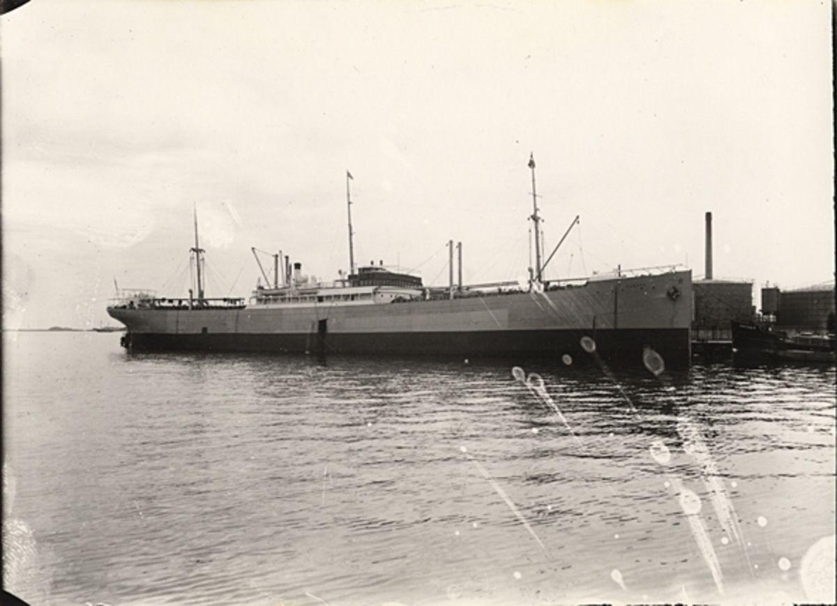 Foto i svartvitt visande lastmotorfartyget "CANADA" i Köpenhamn.