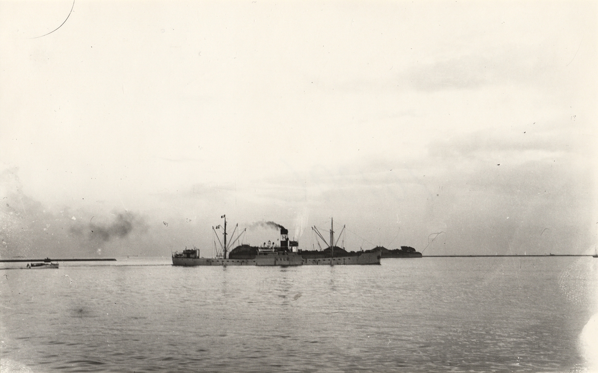 Foto i svartvitt visande lastångfartyget "KALÖ" av Köpenhamn i Köpenhamn.