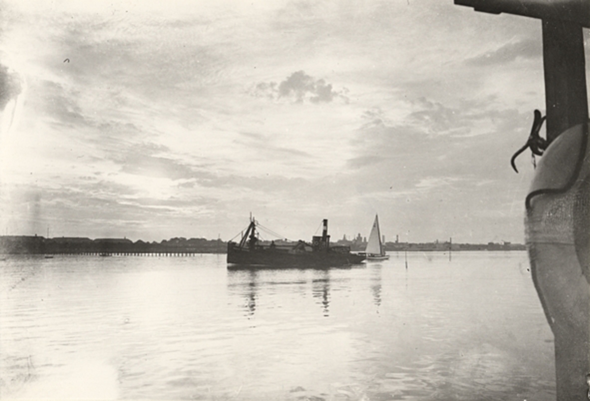 Foto i svartvitt visande lastångfartyget "AVANCE" av Korsör i Köpenhamn.