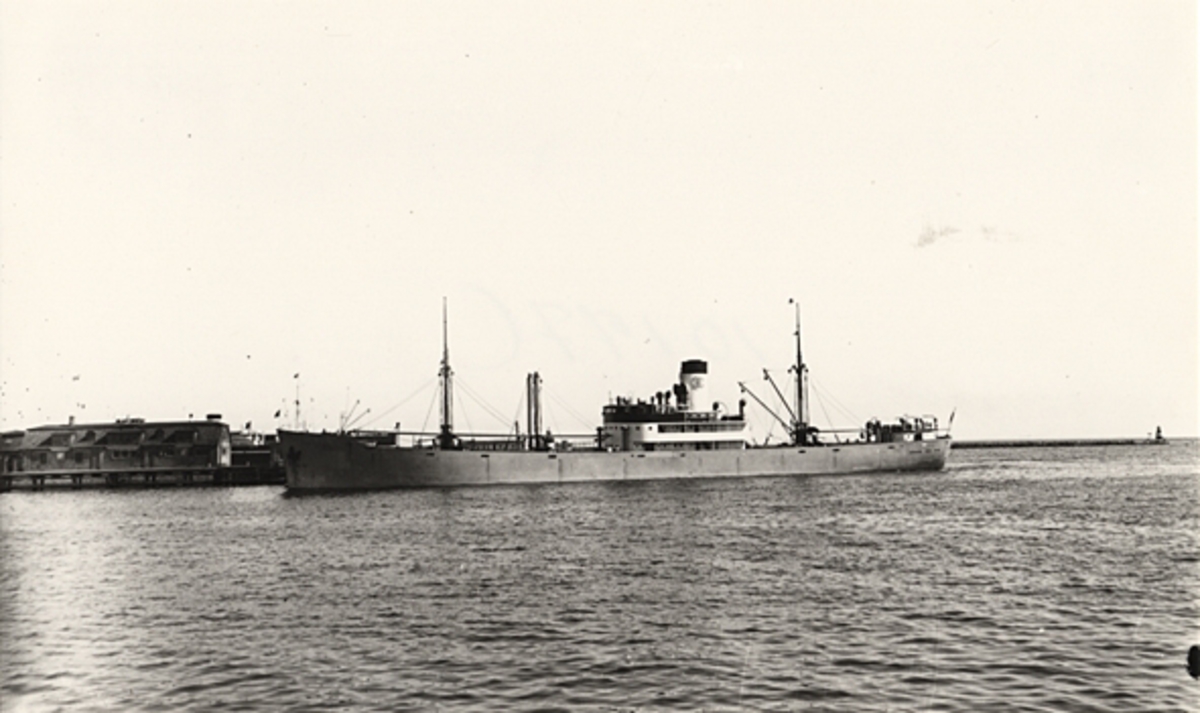 Foto i svartvitt visande lastångfartyget "FRANS GORTHON" av Helsingborg i Köpenhamn.