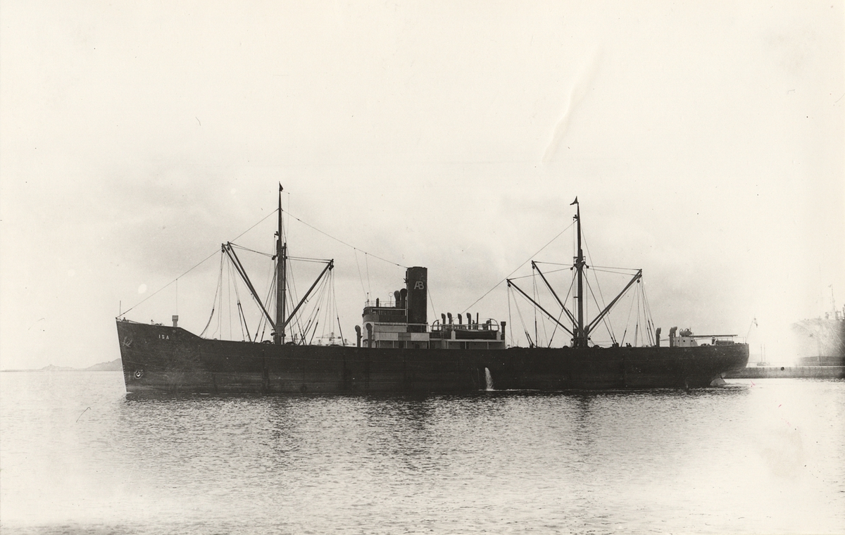 Foto i svartvitt visande lastångfartyget "ISA" av Trelleborg i Köpenhamn.