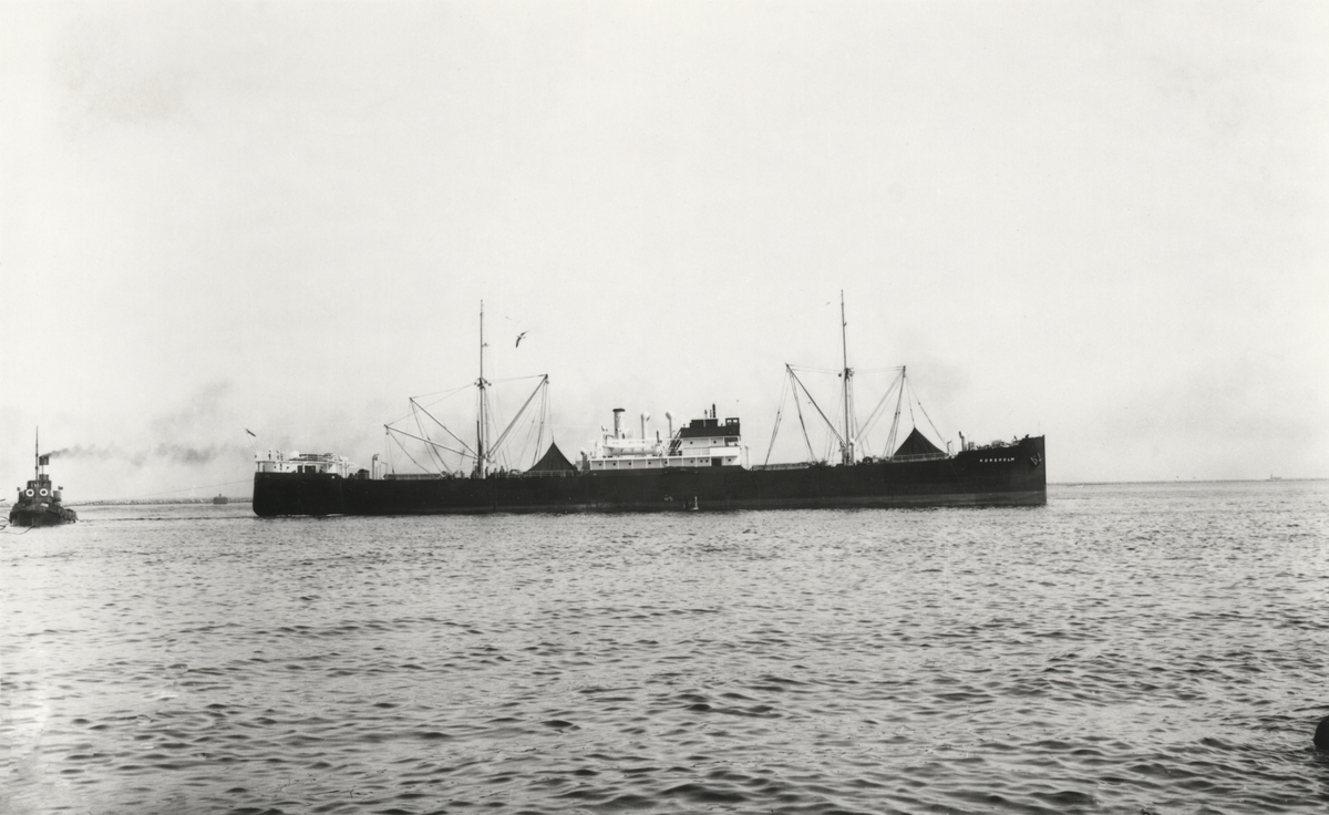 [från Fotobeskrivning:] [---] "Foto i svartvitt visande lastmotorfartyg 'KORSHOLM' av Göteborg under bogsering i Köpenhamn." [---]