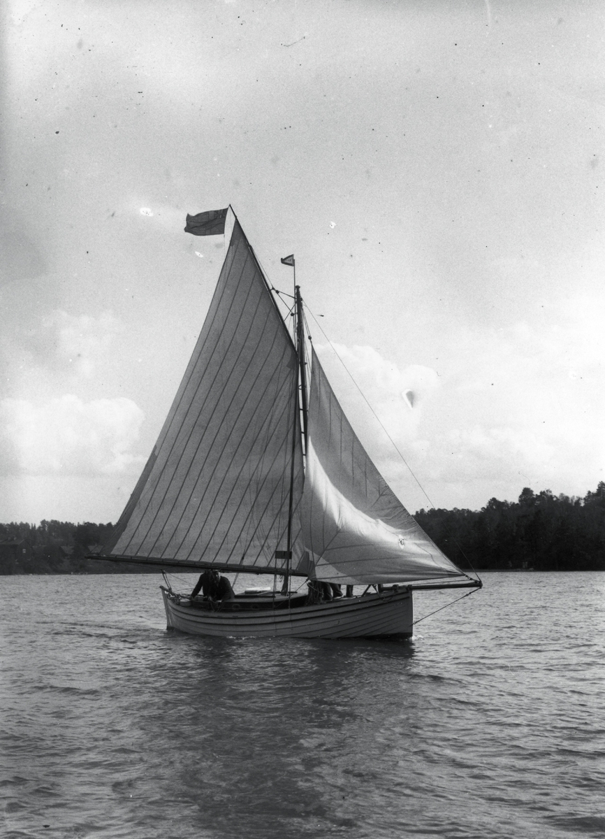 Seglande män på oidentifierad segeljakt.