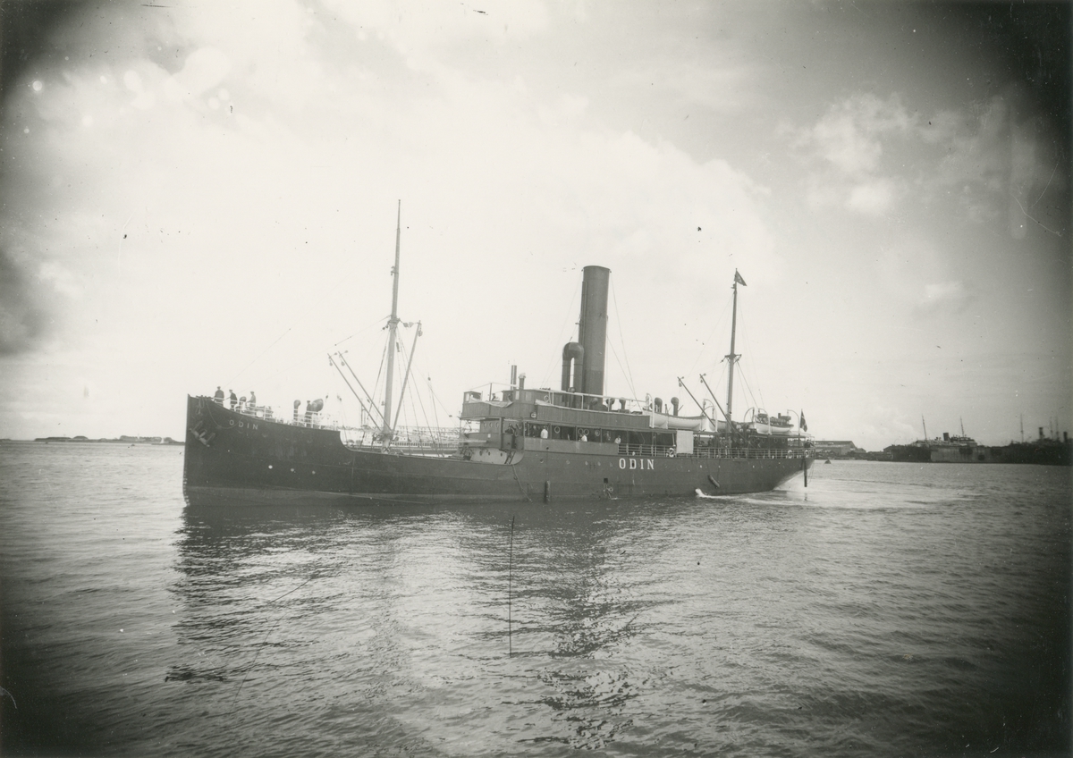 Foto i svartvitt visande passagerar - lastångfartyget Odin av Köpenhamn i Köpenhamn under 1930-talet