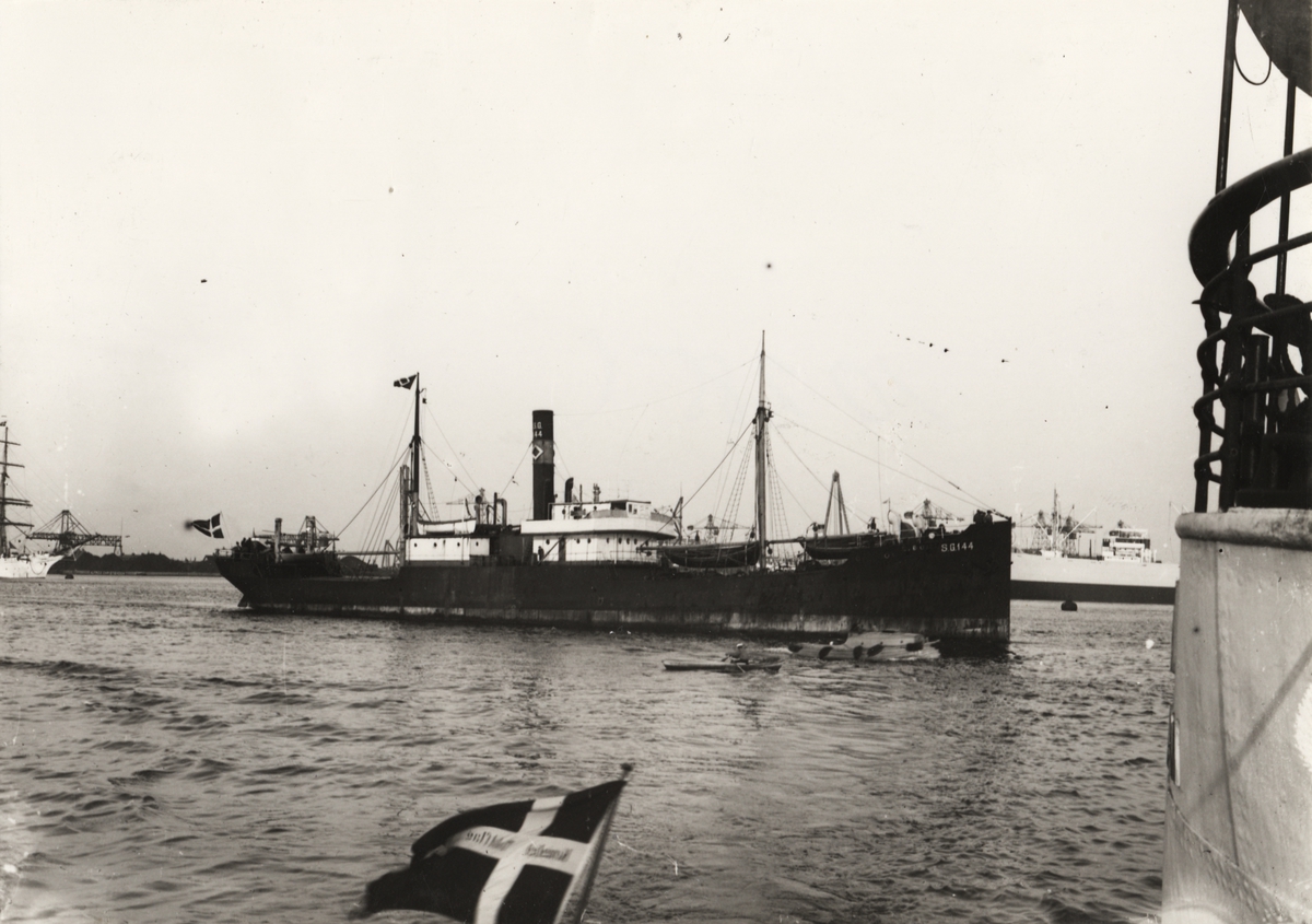 Foto i svartvitt lastångfartyget "S.G.144" av Köpenhamn i Köpenhamn under 1930-talet.