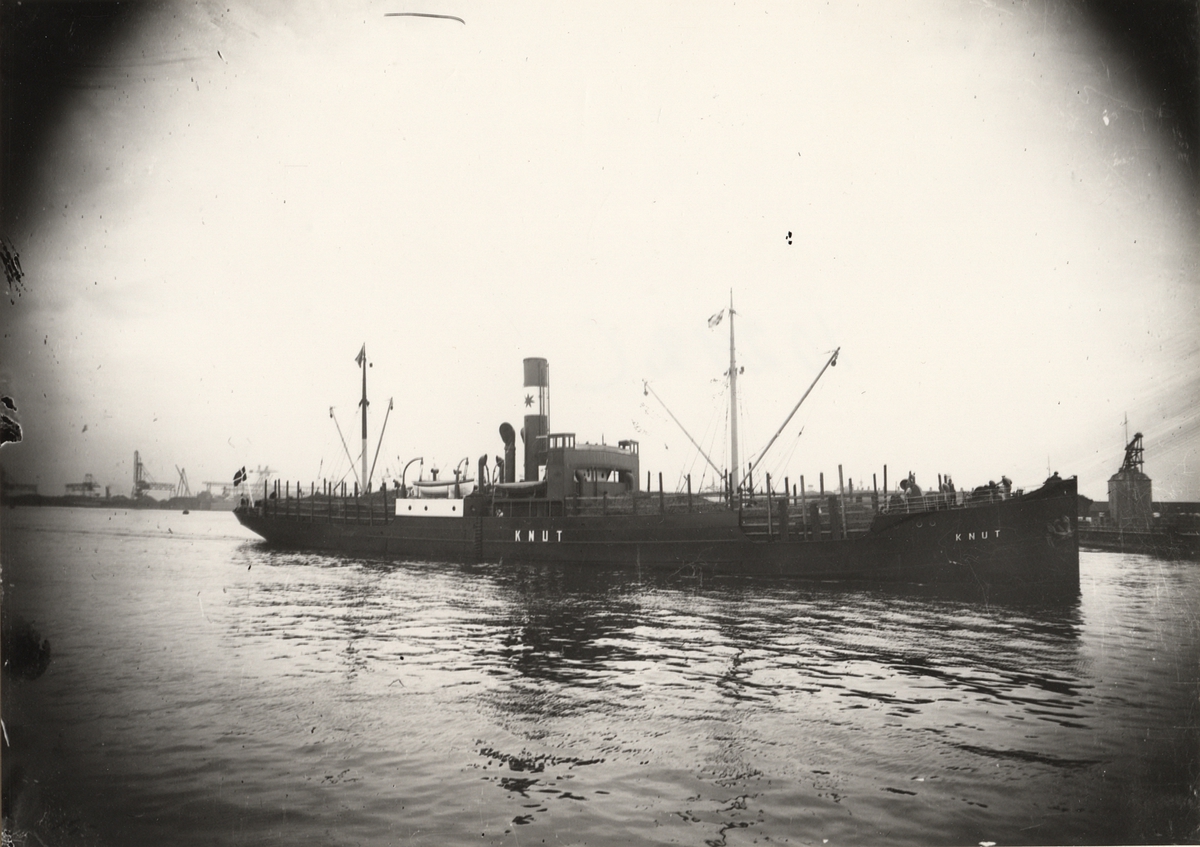 Foto i svartvitt visande lastångfartyget "KNUT" av Köpenhamn i Köpenhamn under 1930-talet.