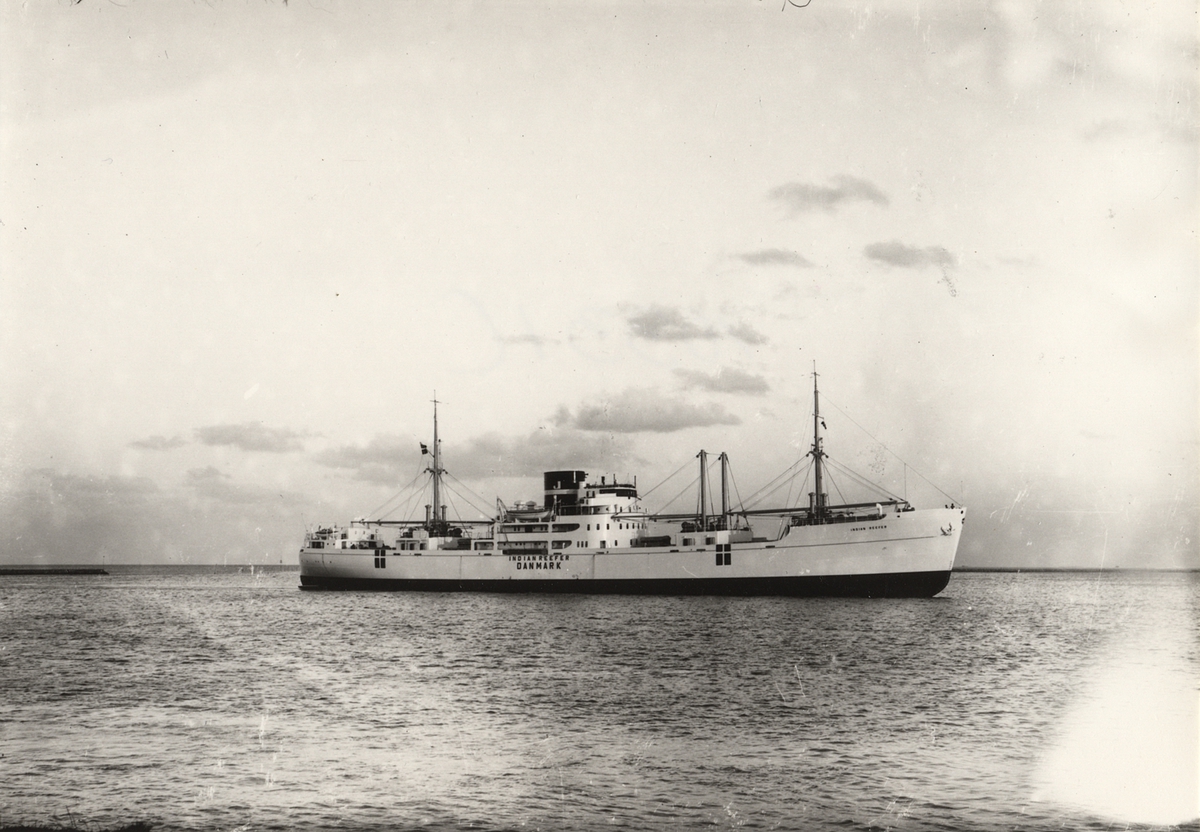 Foto i svartvitt visande lastmotorfartyget "INDIAN REEFER" av Esbjerg i Köpenhamn 1939-40.