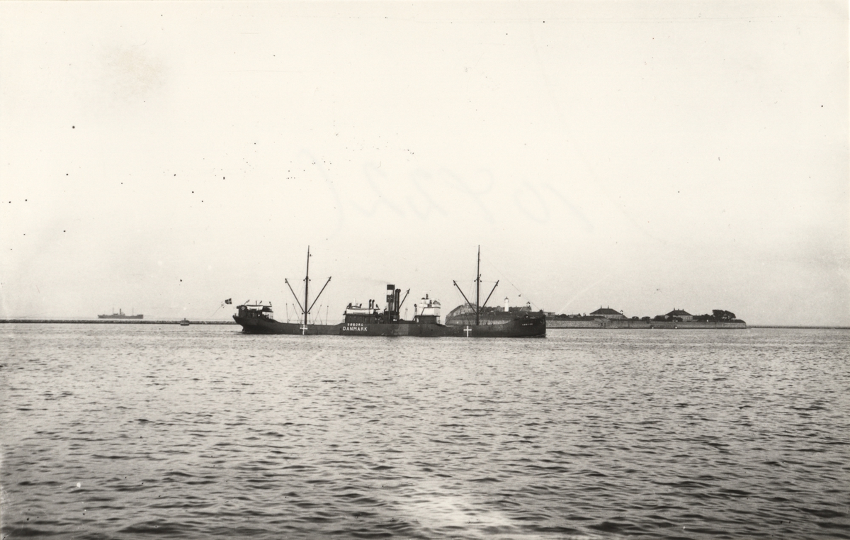 Foto i svartvitt visande lastångfartyget "SÖBORG" av Köpenhamn i Köpenhamn under 1939 - 1945.