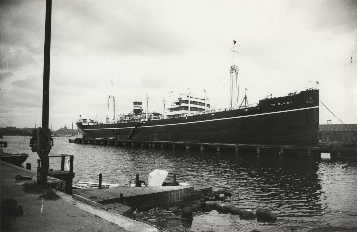 Lastmotorfartyget "TOURCOING" av Tönsberg vid kaj i Köpenhamn under 1930-talet.