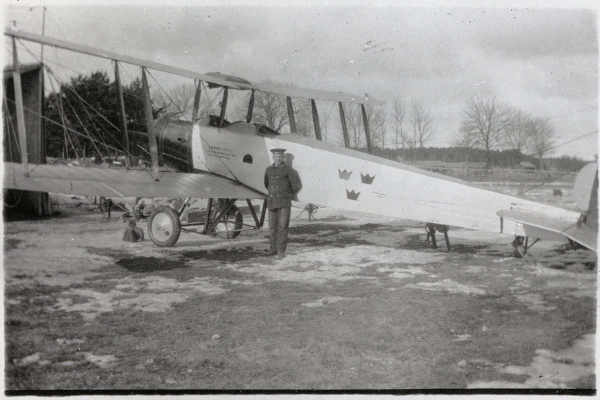 [från fotobeskrivningen:] "Ett av flottans biplan 1924. I förgrunden flygaspiranten Sven Funke."